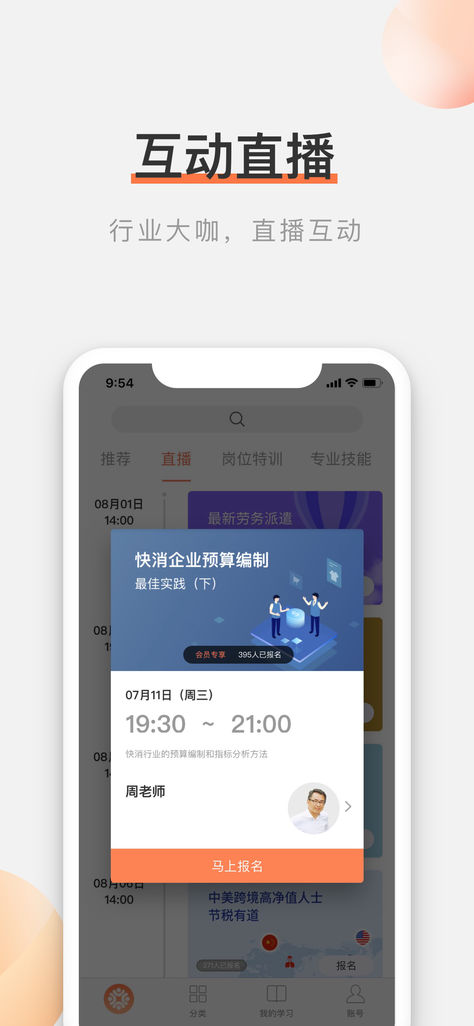 名师课堂:实操课程,能力提升互动直播:行业大咖,直播互动