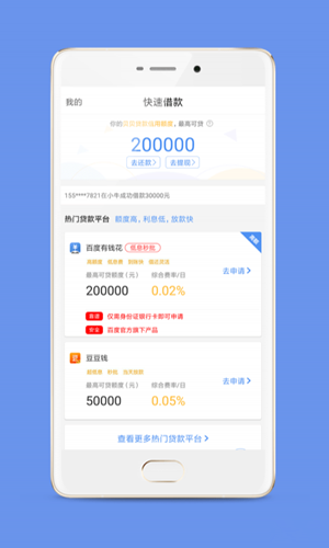 3.现金借款无忧:极速放款,超低费率,分期灵活,可借200000元