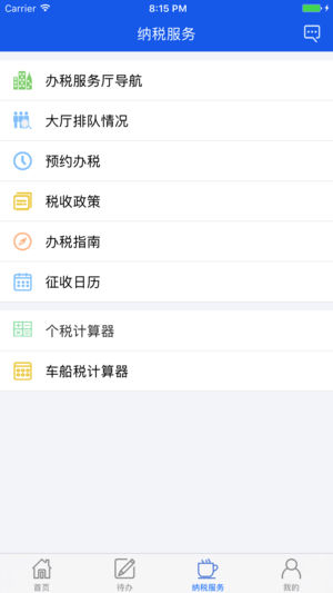 河南网上税务局app提供通知公告、办税服务厅导航、大厅排队情况查询、预约办税、税收政策、办税指南、征收日历、常见问题、个税/车船税计算器、常见问题等功能,目前这些数据与外网互联网平台、12366资料库、门户完整法律法规库数据已进行实时同步。