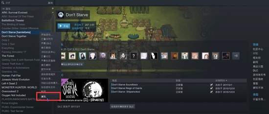 测试权限开启方法:打开steam,选中Don't Starve,右键选择属性,测试栏,