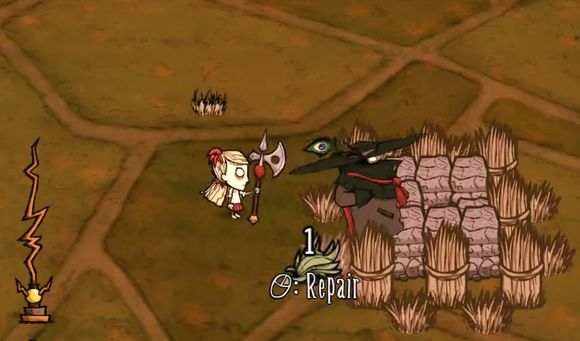 目前有一个设定,当一个守卫塔被摧毁并且周围没有修理工时(仅限白天),会在大概一个半屏幕的位置生成一个新的修理工,而这个修理工如果逝世,还会生成另一个新的修理工,如此循环,原则上可以做到全自动。