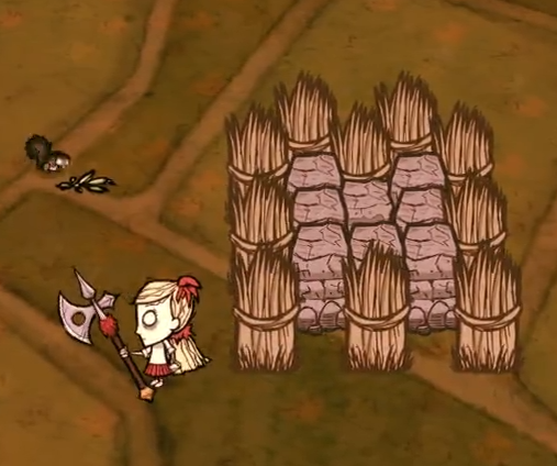 【重点】提前建造门口。打塌最外圈草墙。等小偷到死角之后,再建墙就来不及了,必须先建墙。等小偷进去后再修墙,困住小偷。