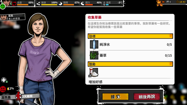 找到幸存者之后,你需要通过完成他们的任务、赠与他们物资来获取好感,只有当好感超过一定的程度之后,幸存者们才能被招募。