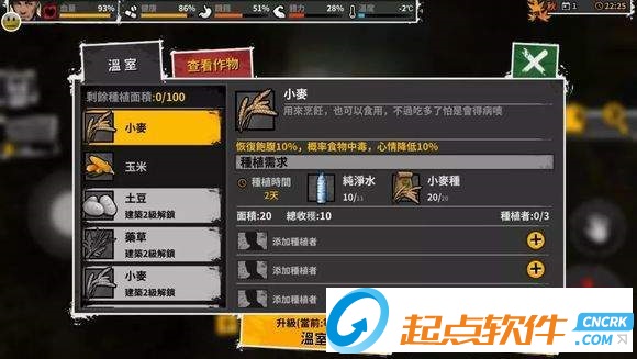 火堆建起来之后,在火堆中放入木材就能让火堆燃起熊熊火焰,从而提高营地内的温度,10块木材能够提供一天的温度。而点燃火堆之后可以看到整个营地的温度上升了5度,有了这个火堆就算到了冬天在营地也不会觉得冷。冬天温度降低,室外的活动受限制,如果没有防寒装备就只能在营地靠着火堆度过冬天,这时候就需要储备食物。除了尽可能多的收集食物,在营地通过温室种植以及厨房烹饪也是一个获取食物的办法。