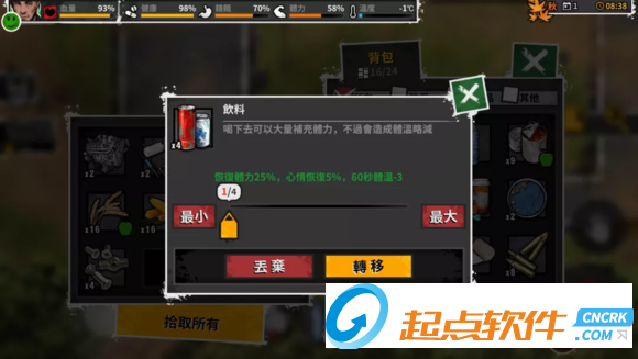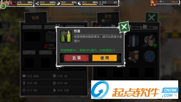 然后是烈酒,可以提升20%的体力,顺带提升体温+3,在寒冷的夜里使用可以一举两得。