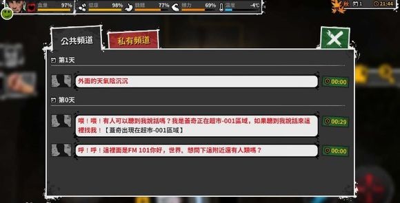 时刻注意着广播的公共频道,有时候会收到幸存者的广播,广播会告知幸存者的位置。当收到幸存者广播的时候,点开地图就能看到幸存者的位置。幸存者的位置一般会在房间的最顶层,而幸存者那一层房间可能能还有着需要解谜才能进的门。而幸存者一般不会在一个地方呆的太久,一般过几天就会离开,如果要招募的话需要抓紧时间才行。