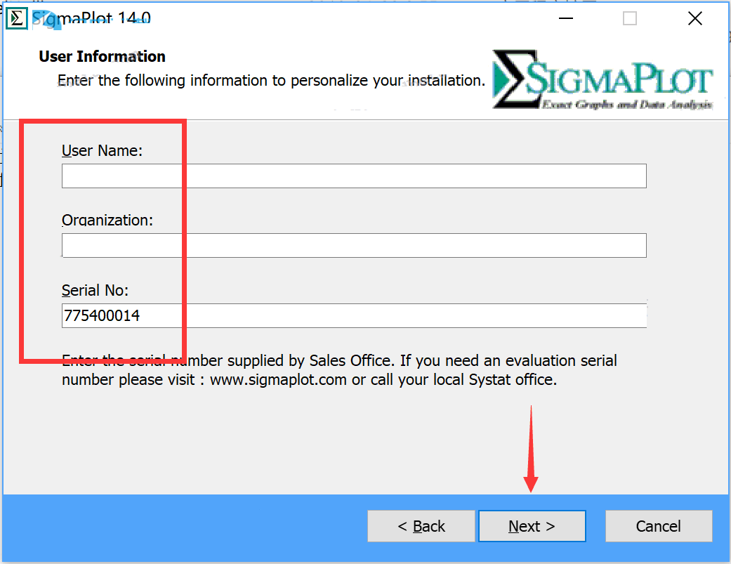 4.输入用户名:jb51.net 组织:脚本之家,序列号:775400014