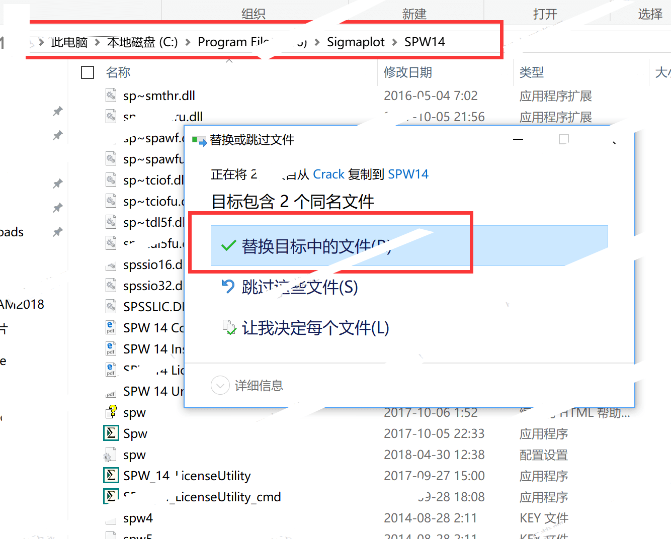10.先不要运行软件,将crack文件夹内的SentinelU.dll和Spw.exe复制到安装目录并替换