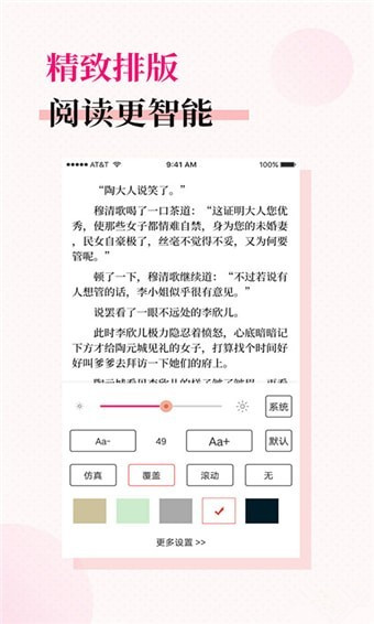 5、舒适的阅读体验,夜间模式,自动阅读,随意换背景和字体大小,让您畅快阅读!