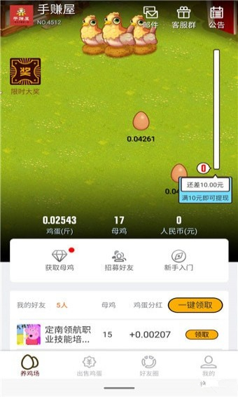 母鸡可离线产出鸡蛋和现金红包,养鸡大亨软件内可直接卖出变现