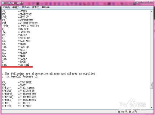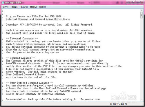弹出名为【acad.pgp】记事本文件。