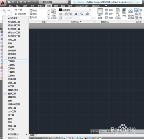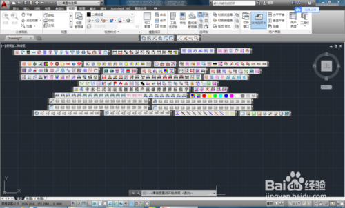 关闭AUTOCAD2014,再重新启动,就会出现如图所示所有燕秀工具加载完成的图面。由于所有的工具都显示在工作界面上,给我们的绘图会带来很大的影响,我们要关闭一些不常用的工具条。以保持界面的整洁,方便绘图。