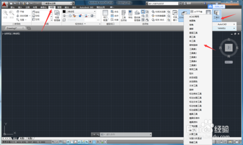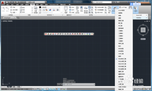 关闭所有的工具条后,我们在需要再使用时,在”视图“菜单中找到”工具栏“,点击下面小三角符号,会出现AUTOCAD与YANXIU两个工具栏,我们把鼠标指向YANXIU后面的小三角,就会出现我们期待已久的燕秀工具箱的工具条,将我们需要的勾选,就会出现在界面中,供我们使用了。
