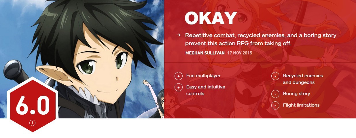 时间背景大约是SAO篇章结束之后,在新生ALO里新增加了一个大陆“Swarf ALfheim”。桐人等人的任务目标,就是攻略这个未知地区。在这片新大陆上,光与暗交织,也将会产生新的故事。Swarf ALfheim浮游大陆,这个新大陆是由多个浮游大陆组成,每个浮游大陆的环境各不相同。首次公开的有草原地区、冰山地区和沙漠地区三种。“第一之岛 浮岛草原鲍克林迪”——浮岛草原是Swarf ALfheim浮游大陆之一。在这座岛上,四处都是风车一集巨大的建筑物,如果在这里飞行,感觉非常好。战斗系统方面本次将会是完全即时的战斗,据制作人说这次不会有类似自动攻击的系统,完全是按一下打一下,而攻击手段也多种多样。【游戏评价】