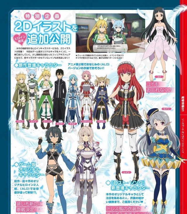 莉法 CV:竹达彩奈 桐人的妹妹,原本是《ALO》的玩家,性格活泼,一直关注着哥哥。诗乃 CV:泽城みゆき 因为一些原因被困在《SAO》中,拥有稀有技能弓箭,沉着冷静的支持着队友们。