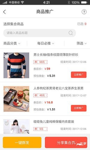 用户申请成为更多券合伙人,开通更多券淘客助手功能,实现淘客领券、淘客发单,一键分享商品到朋友圈,即刻拥有自己的淘客助手app。