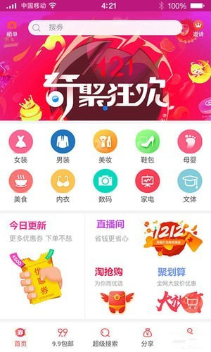 女装、男装、内衣、母婴、化妆品、鞋子、包包、美食等,给您带来最完善的购物优惠券搜索体验。