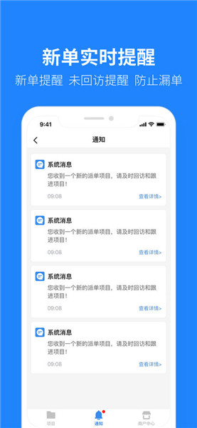 有新的派单项目,手机上会实时收到提醒,可以快速回访业主。