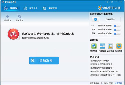 起点提供游戏优化大师官方免费下载,游戏优化大师是一款专为游戏用户打造的专业优化工具,游戏优化大师结合电脑硬件配置,智能分析影响游戏运行流畅度的系统问题,一键操作,全面优化本机系统,帮您解决游戏时的卡机、停顿、弹窗干扰等问题。