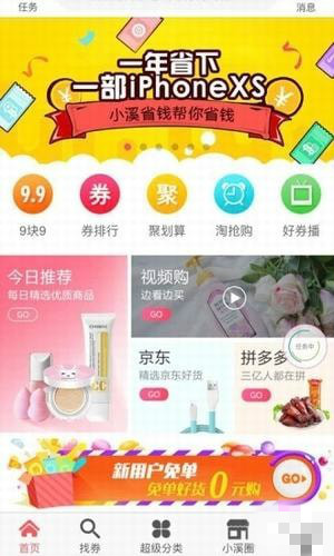 小溪省钱app专注于天猫 淘宝内部优惠折扣,省钱返利的购物神器,女装、男装、居家、母婴、鞋包、配饰、鞋子......全类目覆盖,全场百万内部券折扣商品低至1折,领券后直接跳转到淘宝购物下单立即省钱90%以上,领券折扣后还有大额返利,集领券省钱,购物返利,推广赚钱于一身真正的将省钱进行到底,不用囤货,不用发货,无成本,宝妈、学生党、全职主妇、宅男萌妹的兼职赚钱神器。