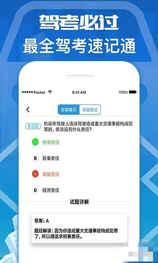 科目一、科目四驾考大全app为你提供:全真题库+官方解释,直连权威数据源,实时更新题库,学车必备练题软件!