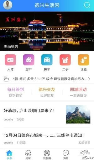 【生活信息】德兴生活网app提供德兴爆料新闻、房产租售、求职招聘、婚恋交友、二手市场、生活服务等各类信息;