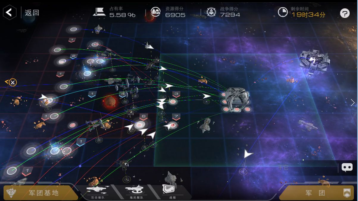 一场征服星域中可能有多个军团参与,要想获得胜利,需要击败所有的敌方军团,或者在时间结束时占有最多的版图。