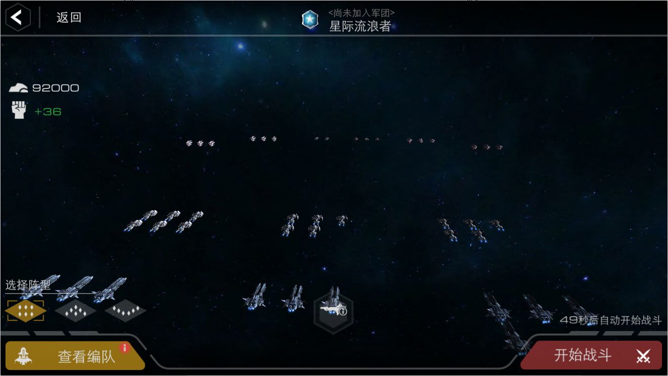 征服星域开始后,需要添加攻击编队才能进行战斗,点击下方的攻击编队按钮选择添加编队,这里需要注意的是,征服星域中有战舰与战舰对冲的战斗,与攻打殖民舰的战斗不同,需要注意编队的阵形。