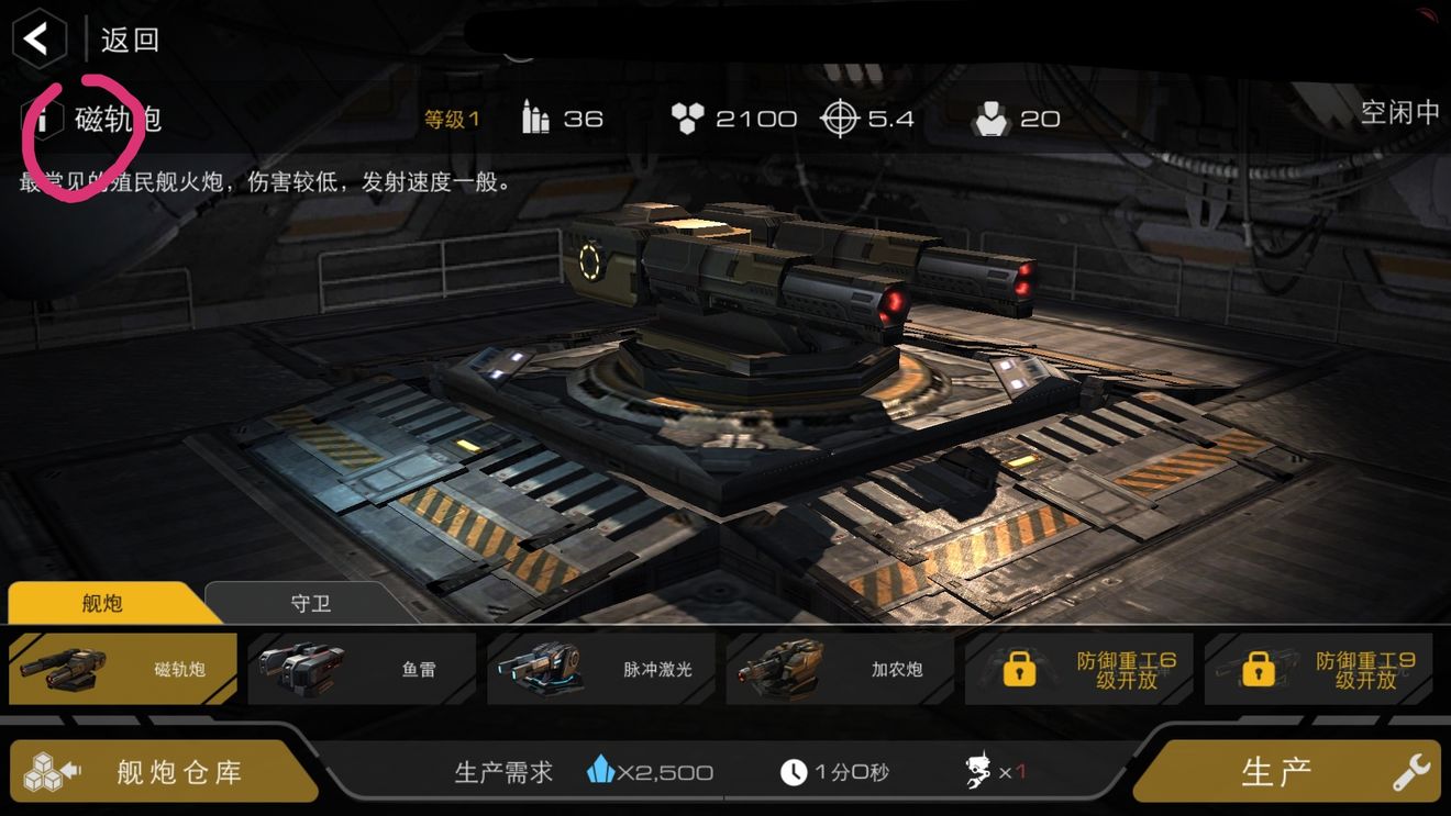 2各个界面的小叹号,他能让你了解这个武器这个防御炮台,这个蓝图的特性。如图: