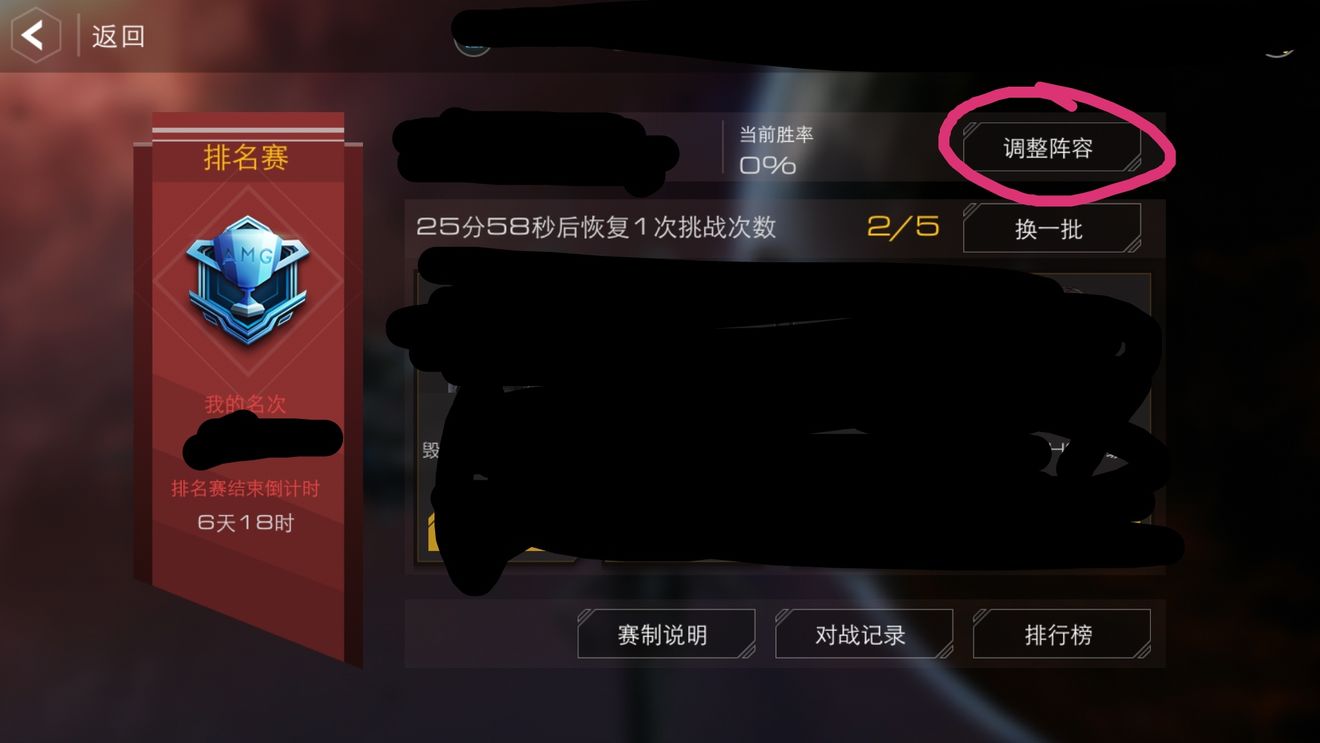 我们注意到在空间机库的左下方多了几个阵型按钮,我们可以先使用1号阵型,在前3个位置上放肉盾,后3个位置上放输出。