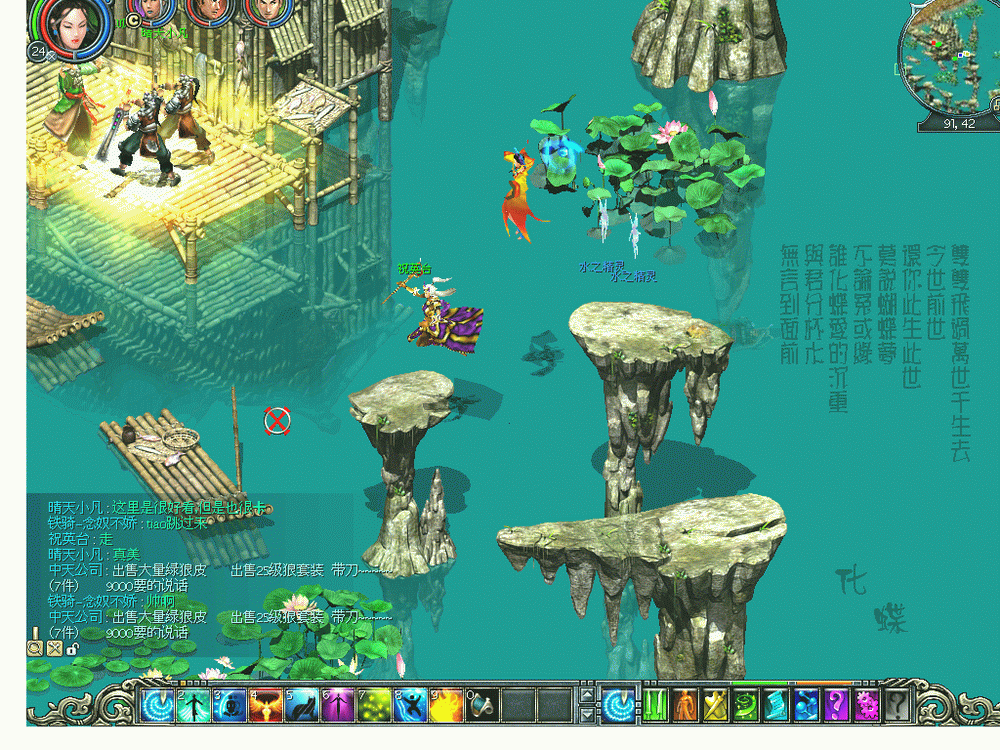 2D场景清新细致:《天2》的画风不同于目标以往在《秦殇》 、《天骄》中略显沉重的写实风格,而是带有中华水墨画般轻灵隽永的意境。使用目标成熟的2D显示技术成功构建出精美细腻风格别具的四域之景。