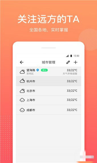 实时跟着天气动态展示,天晴一望无云的蓝天,雷雨天闪电交加等,再也不是枯燥无味的温度数据