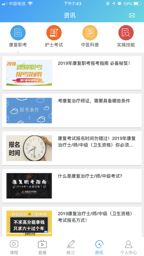 4.资讯功能,康复职考、护士考试、中医技术等消息,一手掌握;