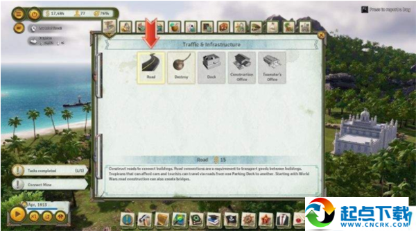 当你修建了建筑,还需要继续修建道路(road)将各个建筑联系起来。