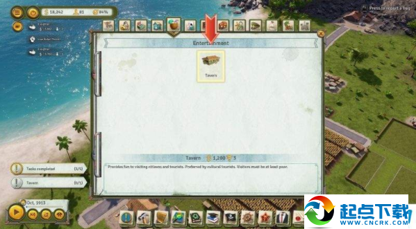 5、前期等钱赚的差不多了,尽量选择建一些酒馆和娱乐设施,亦或是商店,满足人们的食物幸福感。当然建军事基地也必不可少,这样会增加你的支持率。