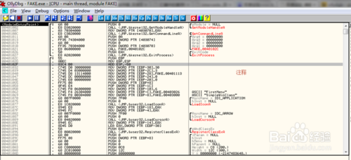 第四列是强大的ollydbg为我们提供的注释功能,能看到一些windows api,或者是一些可读的信息。当然你也可以自己写注释。