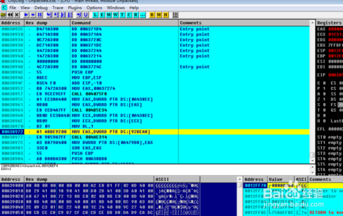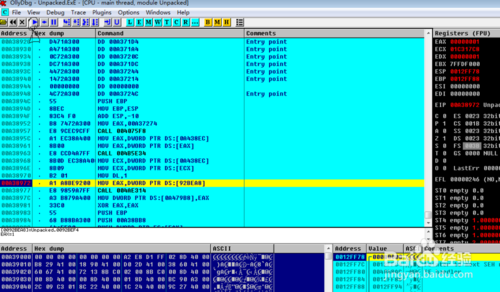 OllyDbg的反汇编器可以高亮不同类型的指令(如:跳转、条件跳转、入栈、出栈、调用、返回、特殊的或是无效的指令)和不同的操作数(常规[general]、FPU/SSE、段/系统寄存器、在栈或内存中的操作数,常量)。您可以定制个性化高亮方案。