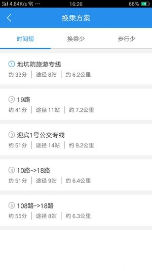 在三门峡行app上输入目的地,一键查询乘车路线,还可以根据时间、换乘次数、步行距离筛选心仪路线。