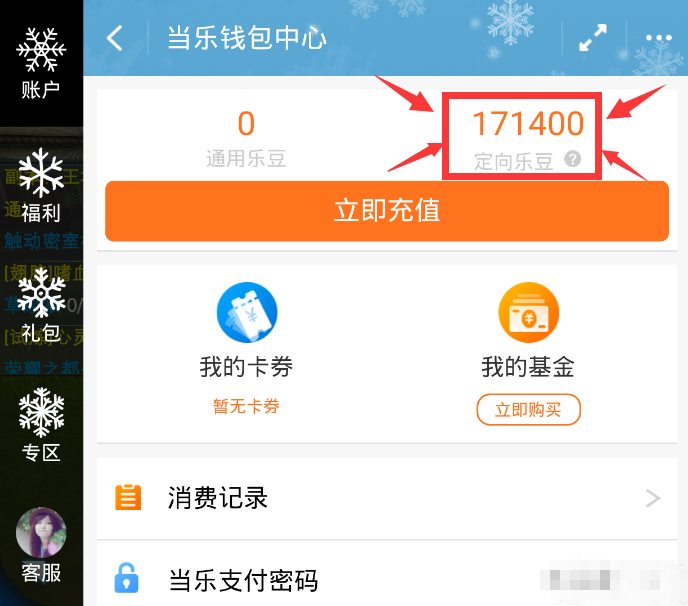 显示的定向乐豆余额就是您当前账号的代金券余额,