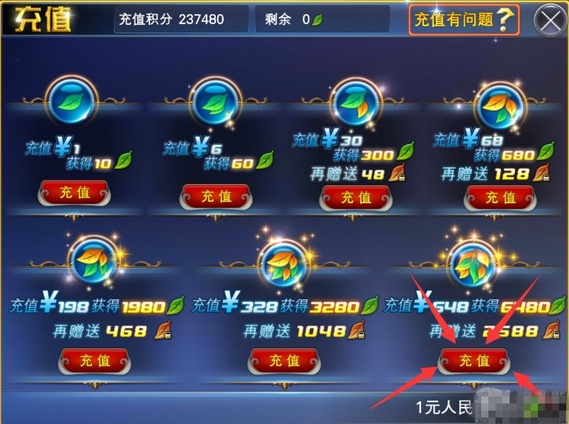 1、进入游戏内的商城,选择您需要充值的项目,进入支付界面;