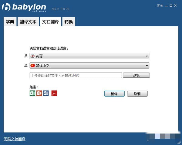 您还可以通过单击Word、Excel和PowerPoint上部菜单栏中的“文档翻译”按钮来翻译文档。