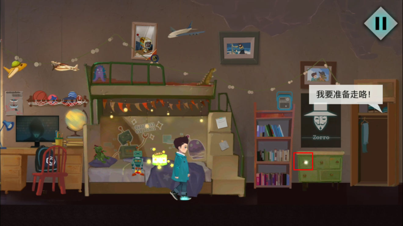 其他柜子不用搜索,没有意义可以出门了。(可选行为,点击藏机器人的大柜子,可以多进去,后果是无法见到妈妈了,不影响后续剧情)