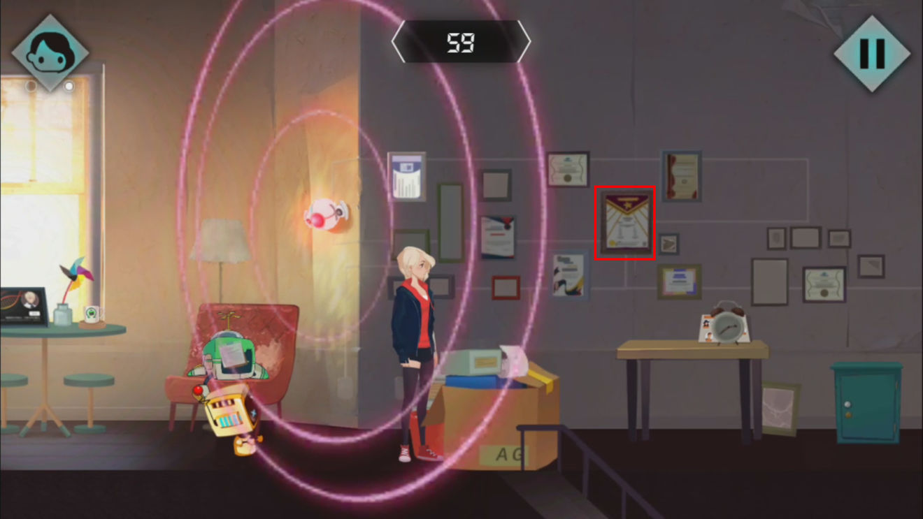 追着点击帽子,可获得第四件物品不断点击机器人,墙上会出现一张图纸,点击图纸获得第五样物品,全物品收集完毕,出门过剧情吧。