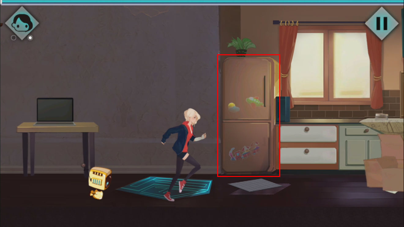 切换角色,控制主角点击电池搬运到供电箱。(可选行为,可以控制机器人启动滑板)