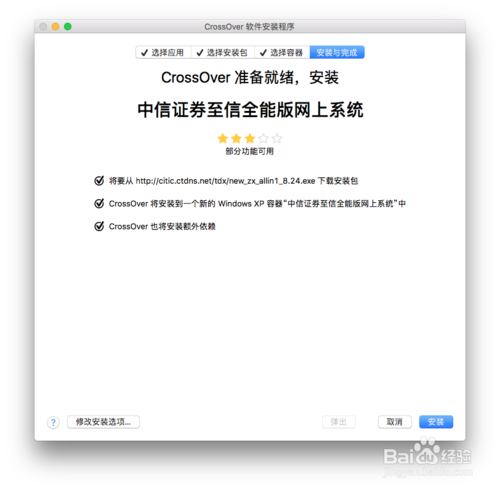 Mac 安装中信证券至信全能版网上系统:1.首先在本站下载安装 CrossOver,