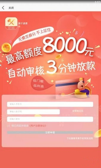 锤子速借app是针对有稳定工作且信用状况良好的自然人,锤子速借软件提供小额信用借款的咨询服务平台,满足该类人群的短期资金需求,属于无抵押无担保的信用型借款产品。