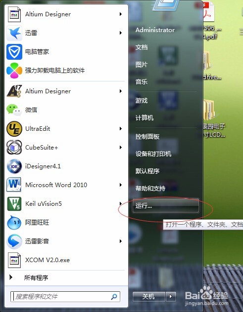现在来到电脑桌面,点击“开始”、“运行”打开运行对话框