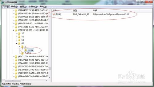4、双击 (默认值) 在下的值 win32然后再更改它的值从%SystemRoot%System32msxml6.dll到C:WindowsSystem32msxml6.dll。
