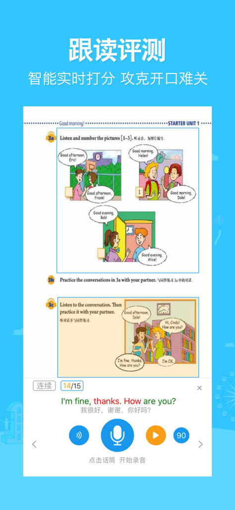 可可学霸app同步初高中英语教材、纯正发音、贴心翻译,可点读、连读、单句复读。