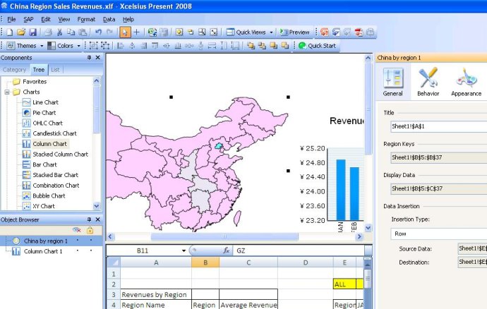 水晶易表算是一个独立的Excel的插件,它可以连接 Excel 表格、通过 web service 和XML连接其他外部数据源,从而将传统的 Excel 表格及静态数据转换为引人入胜的交互式可视化分析。
